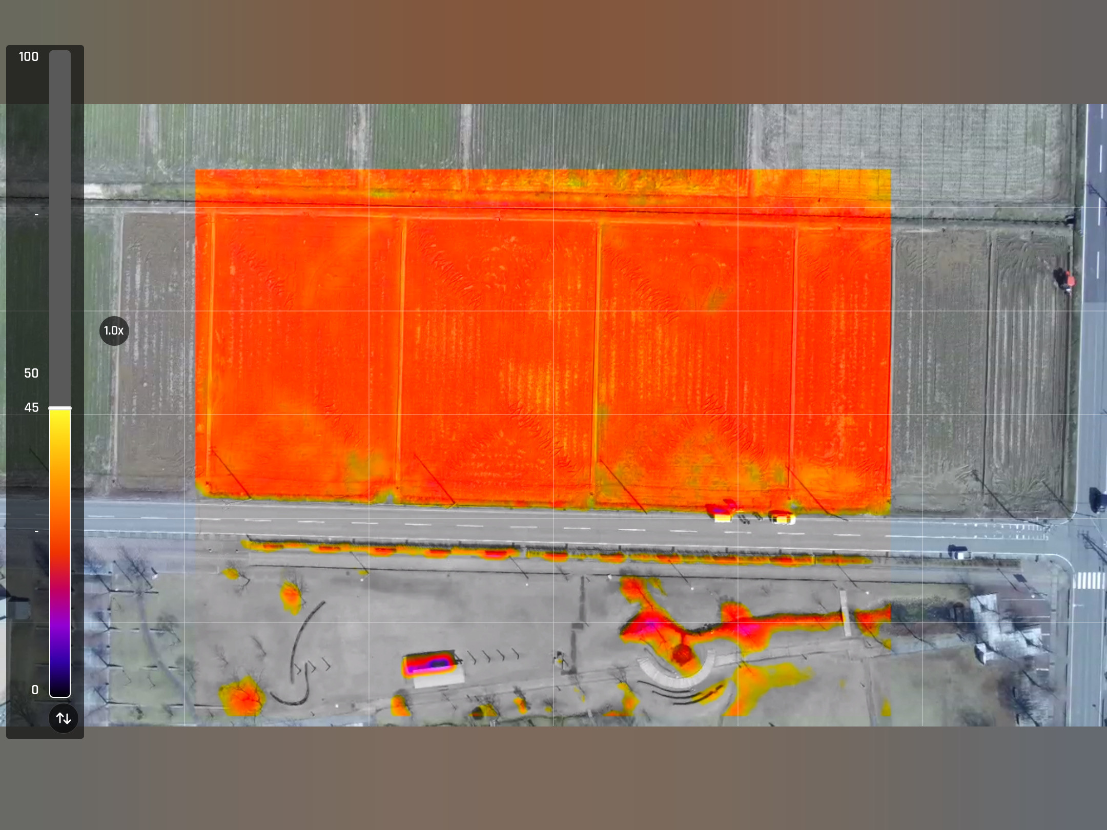 画像にあるサーマルマップ(熱分布図)では、圃場内のわずかな温度差も鮮明に捉えることができており、今後の研究におけるドローン活用の有効性を改めて実感する機会となりました。
