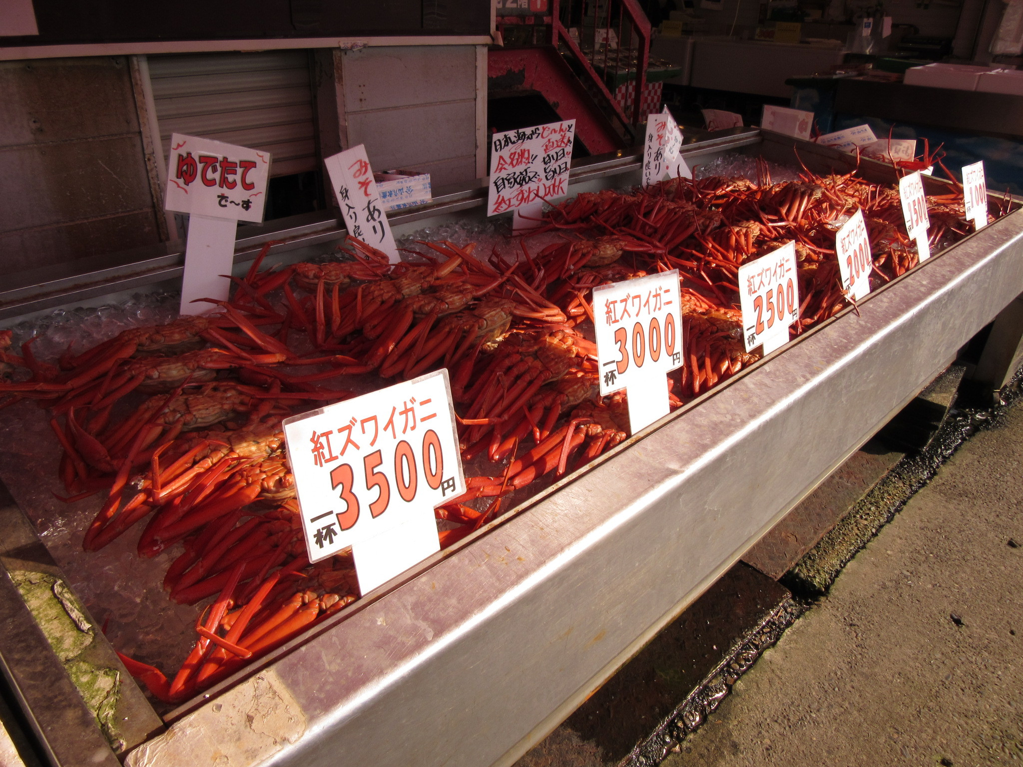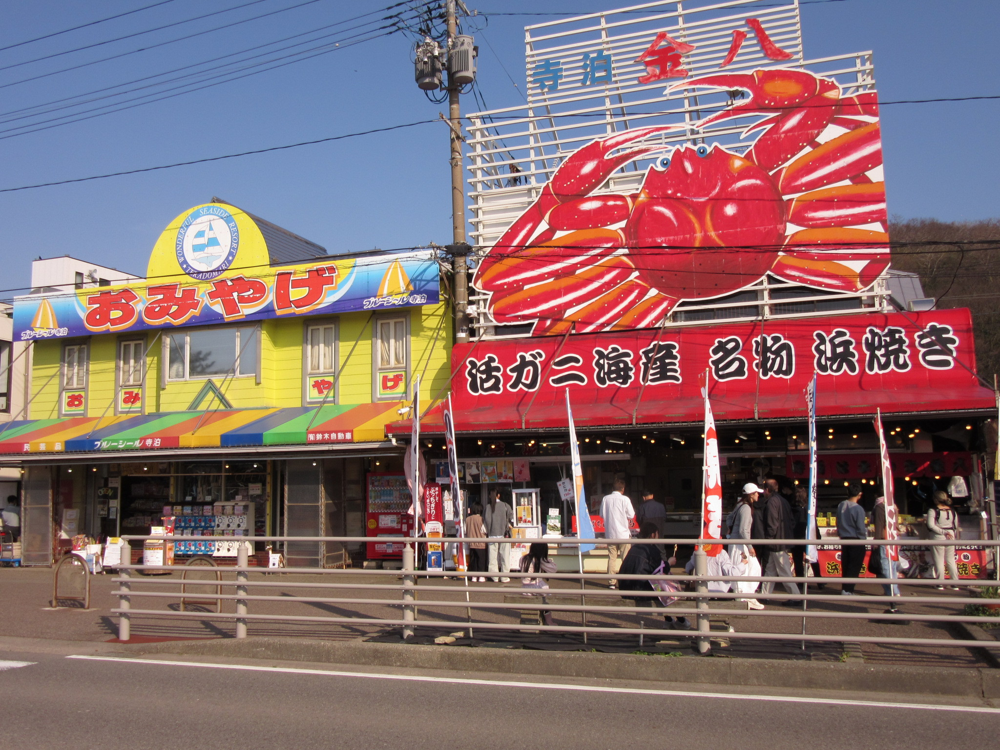 業務終了後は、春の柔らかな日差しを感じながら海岸線をドライブ。寺泊の鮮魚市場(魚の市場通り)で休憩。
