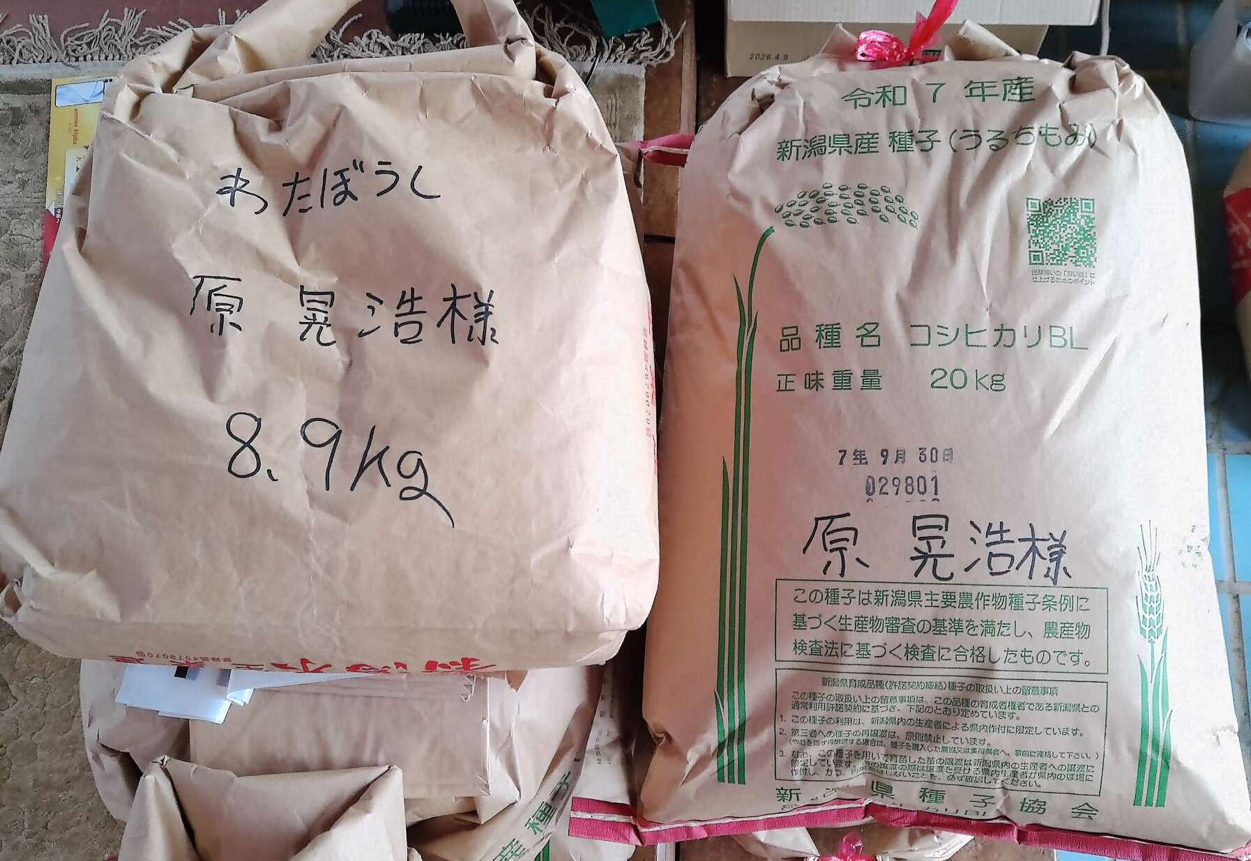 • わたぼうし(もち米): 8.9kg ※全量塩水選処理済み・ドローン直播用