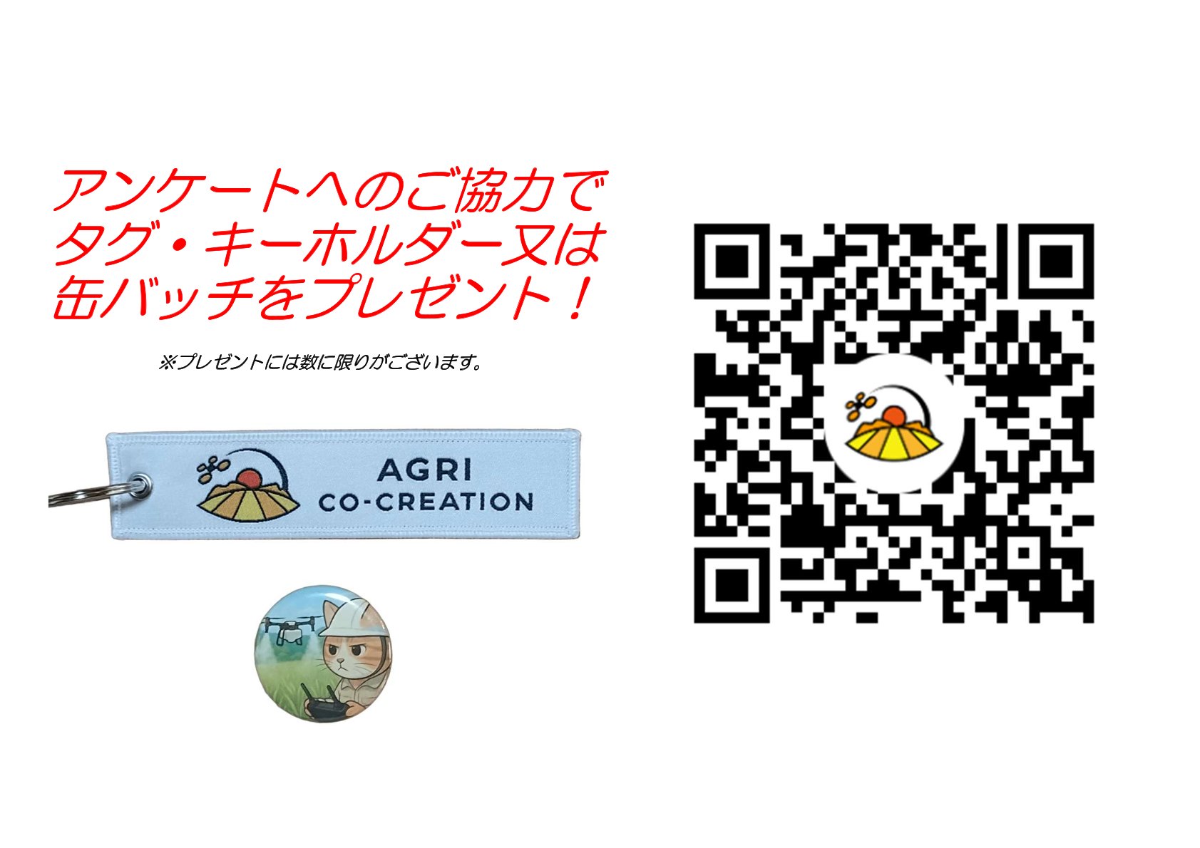 弊社ブースにて簡単なアンケートにご協力いただいた方全員に、オリジナルのタグ・キーホルダーまたは缶バッジをもれなくプレゼントいたします!