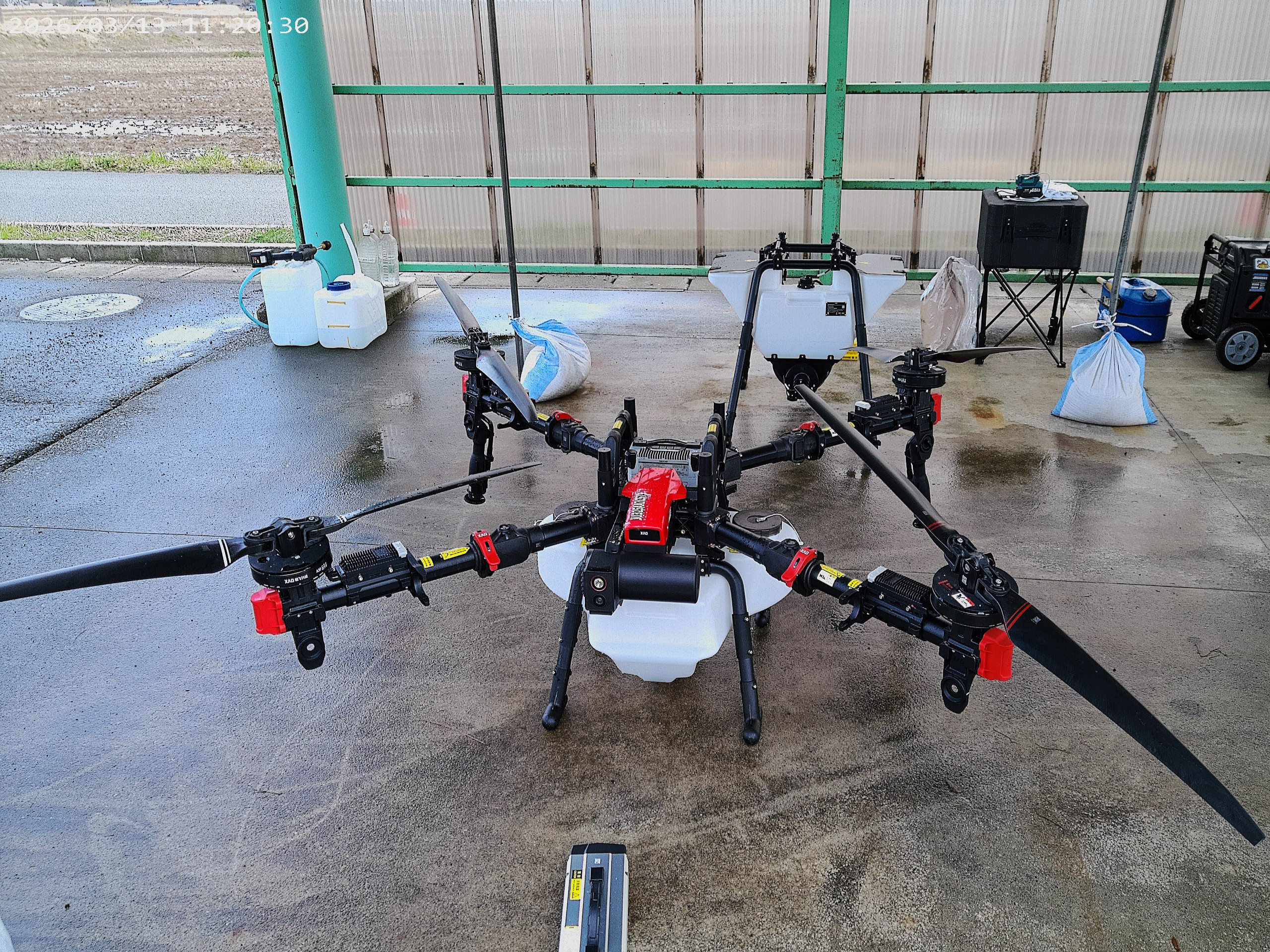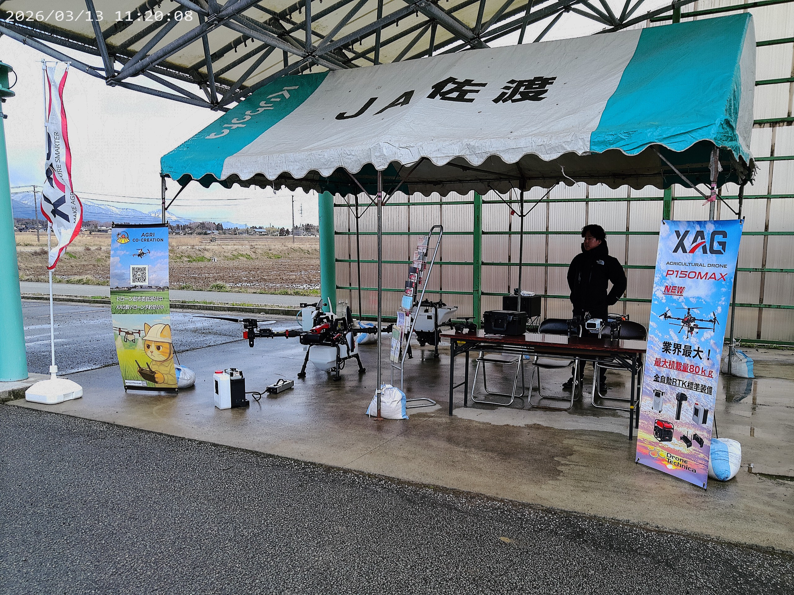 あいにく気温が上がらず、時折雨がぱらつく天候となりましたが、会場には朝から多くの方々が足を運んでくださいました。当ブースでは、農業用ドローン XAG P60 を展示。最新のスマート農業技術に対し、非常に熱心なご質問やご相談を数多くいただいております。